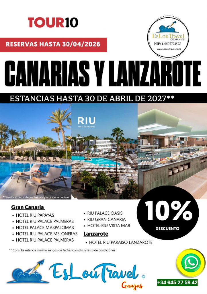 PIDENOS TU RESERVA 10% CANARIAS Y LANZAROTE DEL 30 ABRIL 2027.
